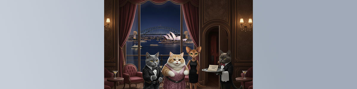 Mitzi’s friend Saphira is still busy with the kittens, preparing for their performance at the Cats’ Collective concert. We are staying on for a few days to see the sights. The girls want to do some shopping, and Sandy and Otto have a couple of gigs booked.